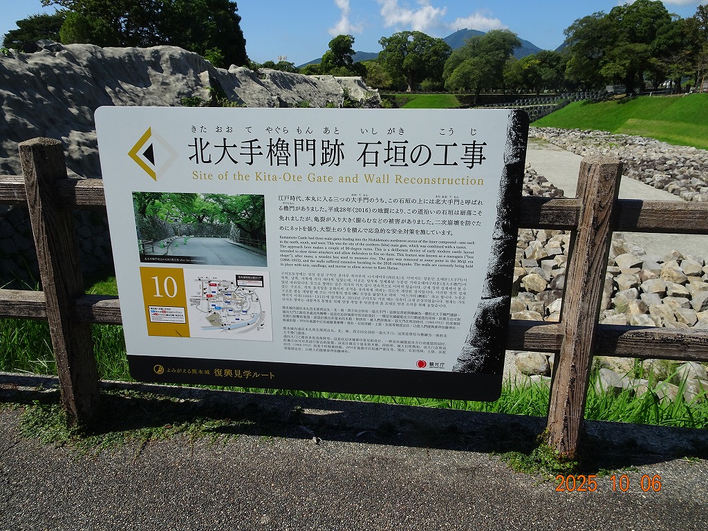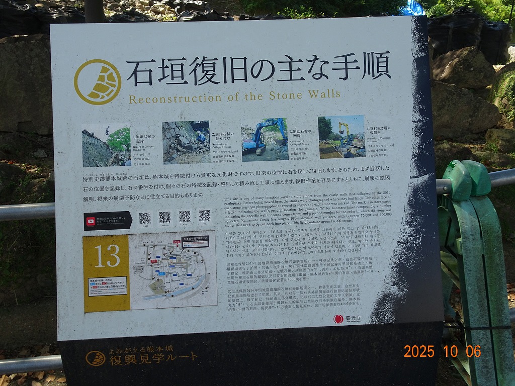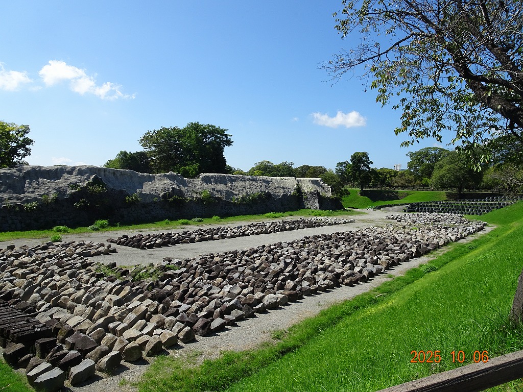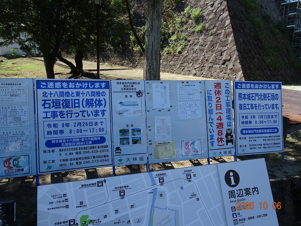 ○あれから17年半経過した令和7年10月6日(月)真向法全国研修会が午前で終了したので、宿泊した熊本ホテルキャッスル近辺のレストランで昼食を取った後、午後1時過ぎから熊本城に向かいました。10月というのに気温は32度とのことで真夏の暑さでした。以下、熊本城見学写真記録です。