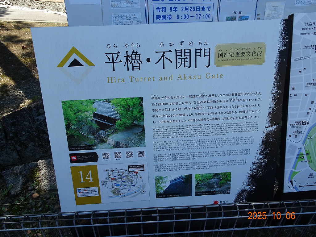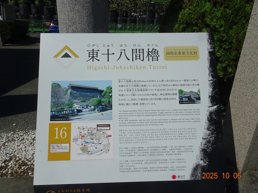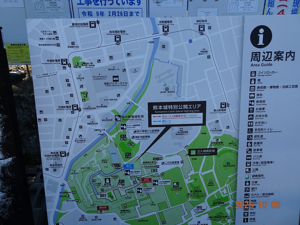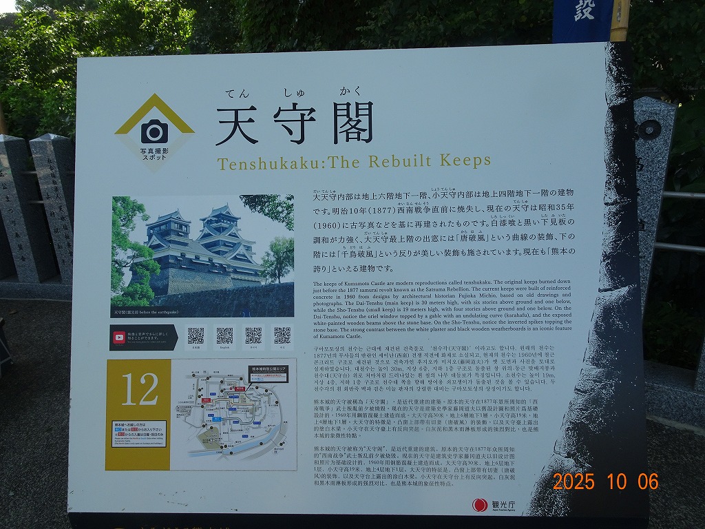 ○あれから17年半経過した令和7年10月6日(月)真向法全国研修会が午前で終了したので、宿泊した熊本ホテルキャッスル近辺のレストランで昼食を取った後、午後1時過ぎから熊本城に向かいました。10月というのに気温は32度とのことで真夏の暑さでした。以下、熊本城見学写真記録です。